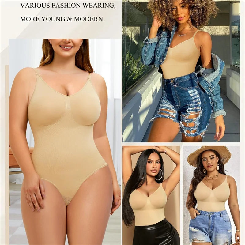 women Shapewear Bodysuit: wireless bodysuit shaper Women Tummy Control Bodysuit Tops Body Shaper