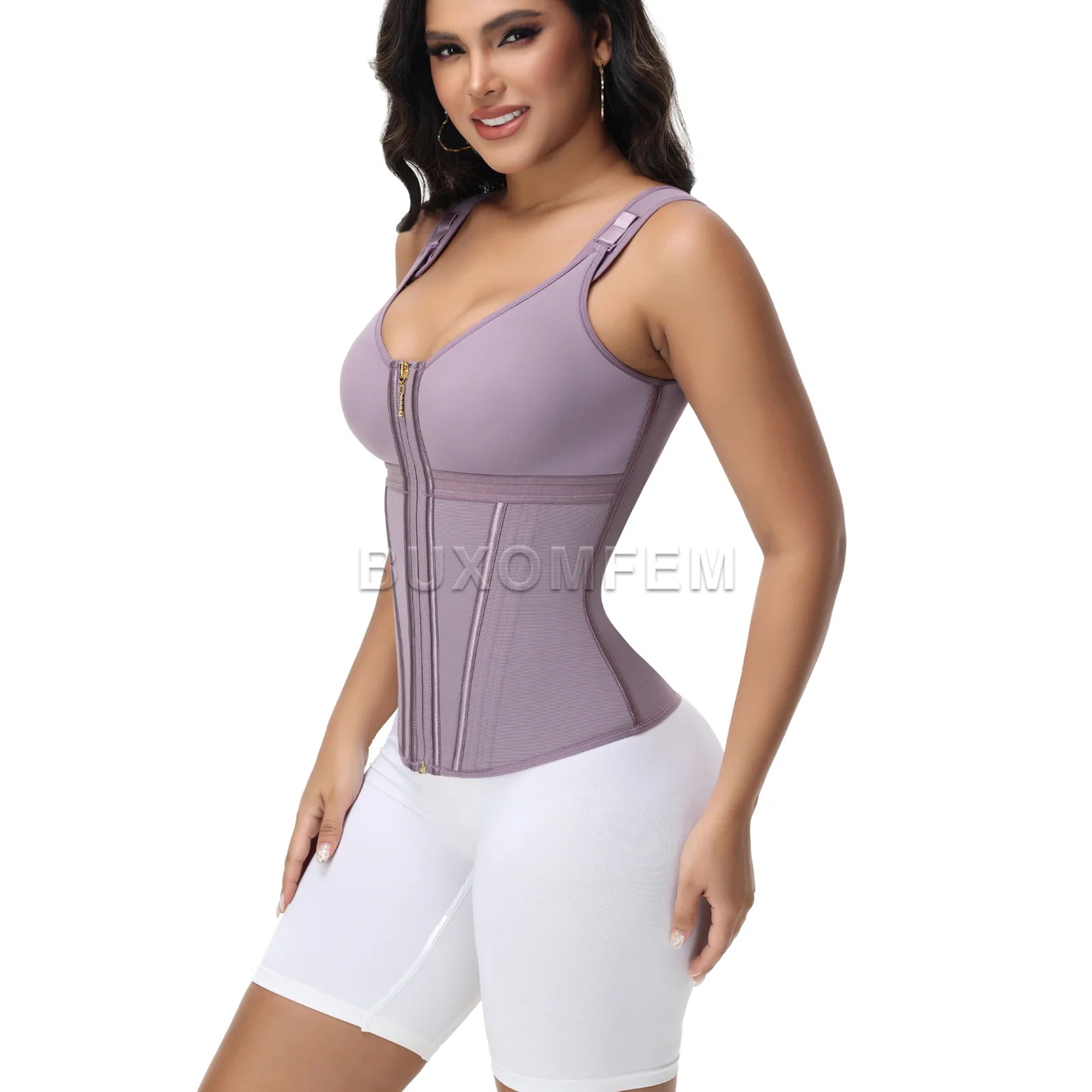 Stylish Seamless Fajas Colombianas Postsurgical Shaping Slim Belt for Women Front-Zipper Colombian Girdles with Shoulder Straps